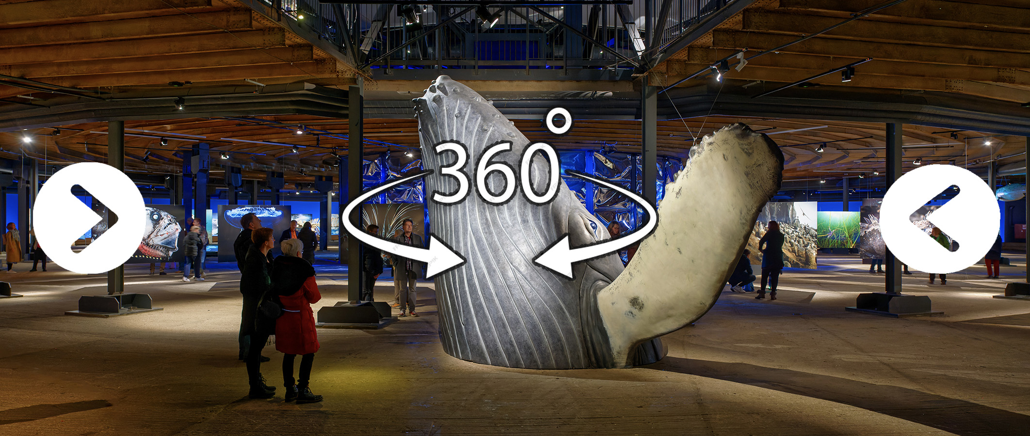 Der neue 360-Grad-Rundgang durch die Ausstellung „Planet Ozean“ zeigt einen Überblick über die vergangene Gasometer-Ausstellung und geht bei einer Auswahl von Exponaten auch ins Detail.