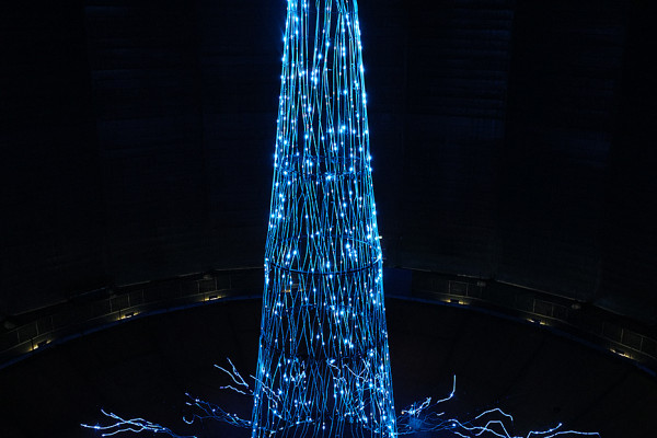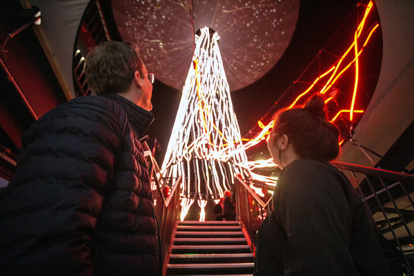 Mit bunten Kugeln, Lametta und einer Lichterkette wird er zwar nicht ausgestattet, aber passend zu Weihnachten erhält "Der Baum" seine strahlenden Lichter. Die haben jedoch nichts mit dem christlichen Fest zu tun, sondern symbolisieren später das komplexe System aus Leitungsbahnen eines jeden Baumes.