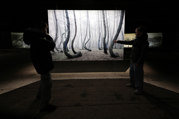 Doch bevor die Bilder die Besucherinnen und Besucher der kommenden Ausstellung „Mythos Wald“ in ihren Bann schlagen können, ist zunächst Handarbeit gefragt. Rund 160 Großformate müssen entladen und gemäß Plan auf der 7.000 m² großen Ausstellungsfläche verteilt werden. Anschließend folgt – noch vor der Hängung – der spannendste Moment: wenn die ersten Hüllen fallen und im Licht der Taschenlampen ein erster Qualitätscheck durchgeführt wird. Nach der Hängung wird schließlich die Beleuchtung eingerichtet. Mehr als 350 Strahler sorgen für die richtige Ausleuchtung. Diese sind jedoch noch nicht alle installiert, und auch die nächste Bildanlieferung wird bereits mit Spannung erwartet.