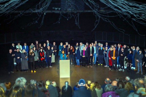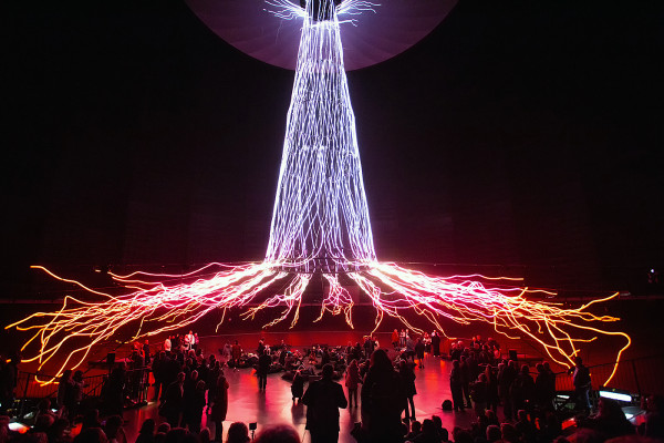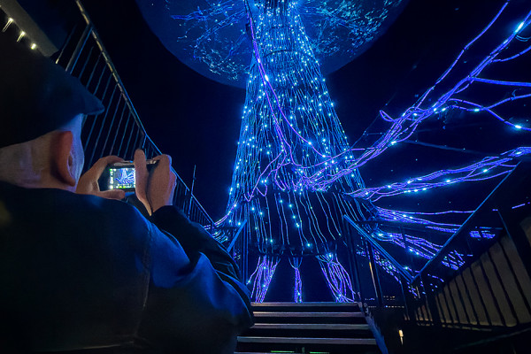Die Lichtskulptur "Der Baum" begeistert die anwesenden Premierengäste.