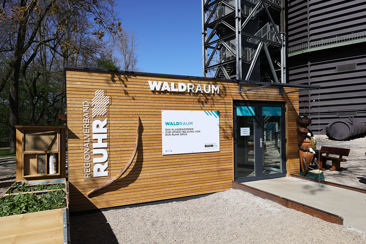 Der Eigenbetrieb Ruhr Grün des Regionalverbandes Ruhr (RVR) bietet im Begleitprogramm der Ausstellung "Mythos Wald" zwei waldpädagogische Lernangebote für Schulklassen und Kindergruppen an. Die Kurse finden mehrmals pro Woche im eigens am Gasometer errichteten RVR-Pavillon „WaldRaum“ und im Freien statt.