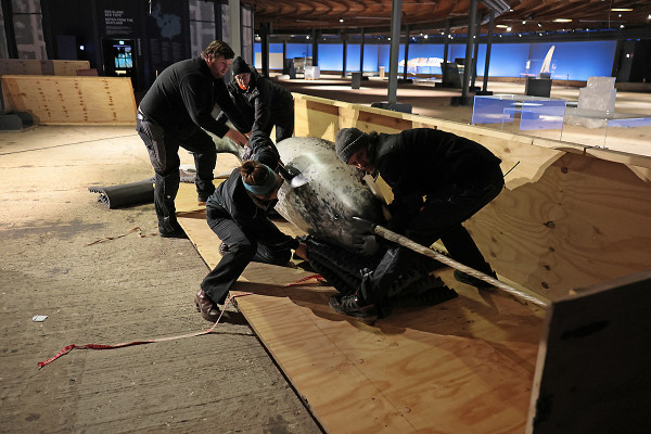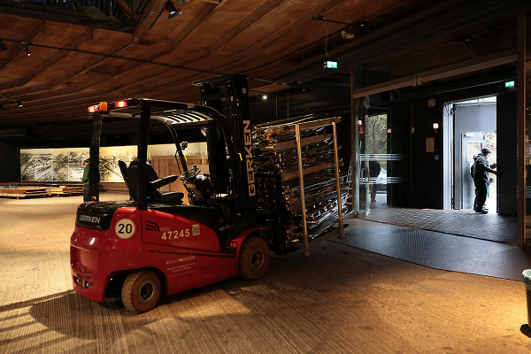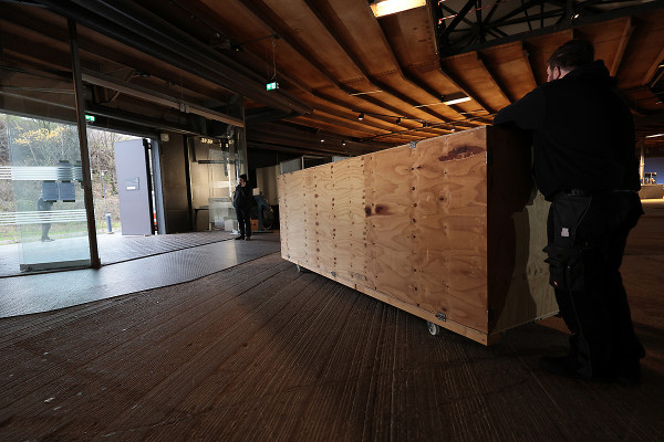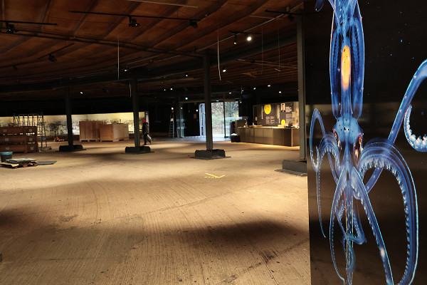 Kaum eine Woche nach Ende der erfolgreichen Ausstellung „Planet Ozean“ ist der Abbau fast abgeschlossen — innen wie außen. Selbst das Megaposter mit unserem Hai ist bereits recycelt. Ab jetzt übernimmt das Aufbau-Team.