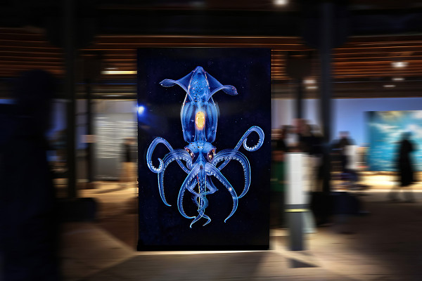Nun aber heißt es Abschied nehmen. Ein letzter Blick auf die großformatigen Bilder, eine letzte Umarmung mit Buckelwal Willi, eine letztes Mal unter der Welle verweilen, eine letzte Reise in die Klangwelten der Meere, denn bereits morgen früh wird hier nichts mehr so sein wie vorher.