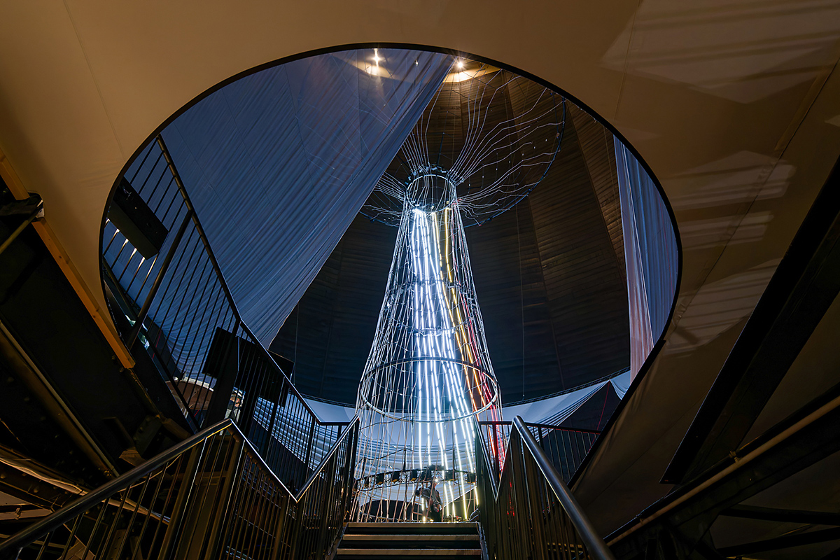 Als Pionier der Medienkunst zeichnet Ars Electronica Solutions aus Österreich auch bei der neuen Ausstellung wieder für den dramaturgischen Glanzpunkt verantwortlich. Mit „Der Baum“ bietet sich den Besucher*innen auf der oberen Etage ein einmaliger Blick aus dem optisch gestalteten Wurzelwerk in die rund 35 Meter hoch in den Himmel des Gasometers aufsteigende abstrakte Baumkrone. Eine bisher noch nie realisierte Kunstinszenierung.