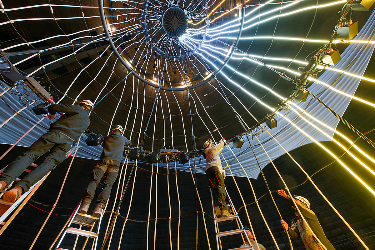 Als Pionier der Medienkunst zeichnet Ars Electronica Solutions aus Österreich auch bei der neuen Ausstellung wieder für den dramaturgischen Glanzpunkt verantwortlich. Mit „Der Baum“ bietet sich den Besucher*innen auf der oberen Etage ein einmaliger Blick aus dem optisch gestalteten Wurzelwerk in die 40 Meter hoch in den Himmel des Gasometers aufsteigende abstrakte Baumkrone. Eine bisher noch nie realisierte Kunstinszenierung.