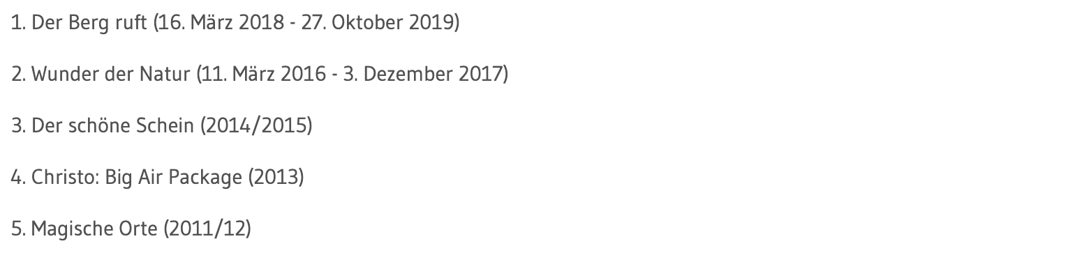 - Der Berg ruft (16. März 2018 - 27. Oktober 2019)